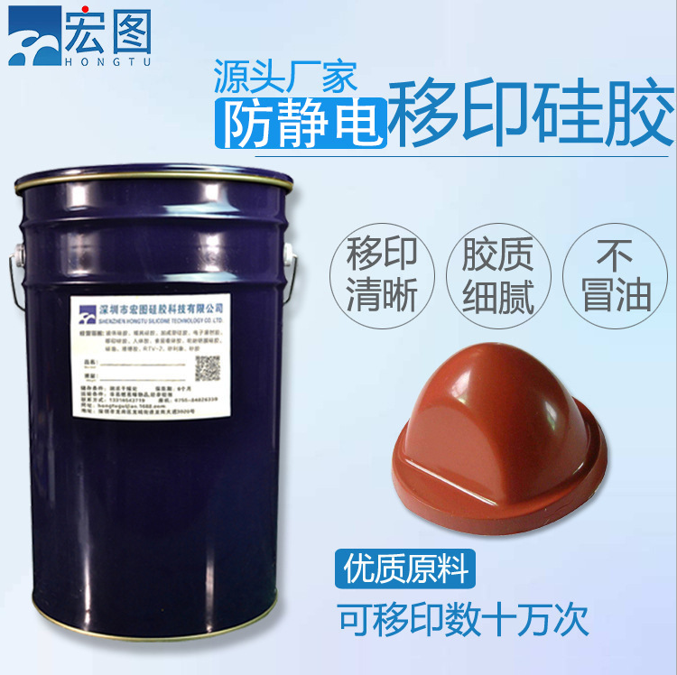 防靜電移印硅膠是一種雙組份加成型硅橡膠,分別是以A、B組分包裝的具有流動性的液體硅膠,可制備優異的移印彈性材料。膠質細膩,無雜質,回彈力好,移印圖案清晰,是制作膠頭的首選環保材料!